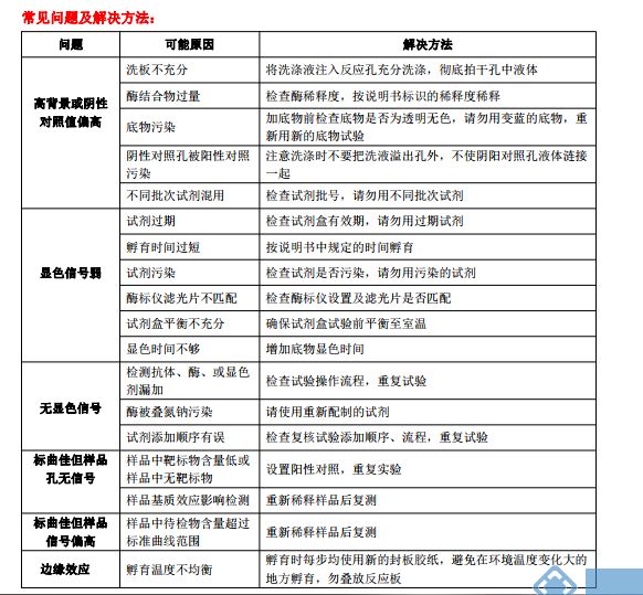 7. 除了试剂盒中的浓缩洗涤液和终止液可以通用外,请不要使用其他来源试剂盒内含的 试剂代替本试剂盒中的某单个组分。